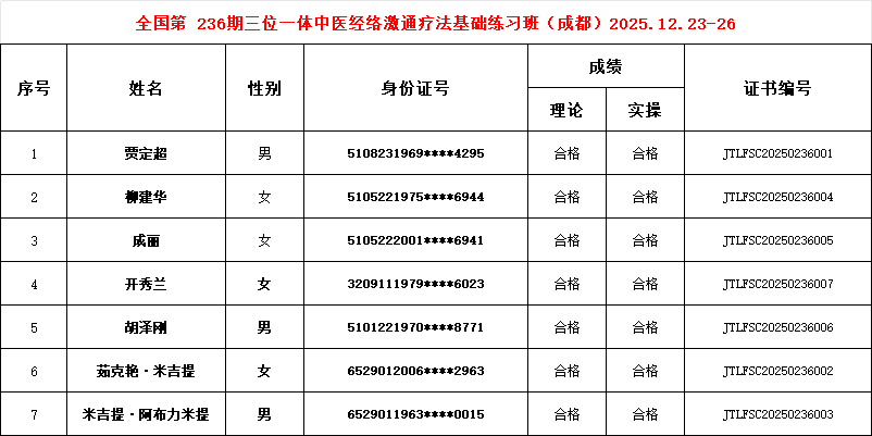 “三位一体中医经络激通疗法”236期成都基础练习班(2025.12.23-26)学员信息表