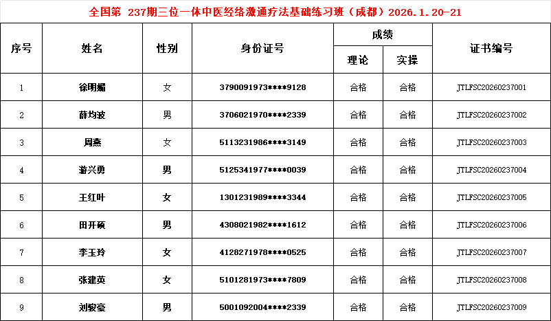 “三位一体中医经络激通疗法”237期成都基础练习班(2026.1.20-21)学员信息表